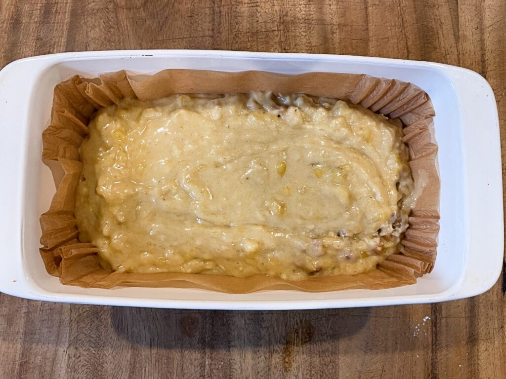 1. Preheat your oven to 350°F and grease a loaf pan or line it with parchment paper.