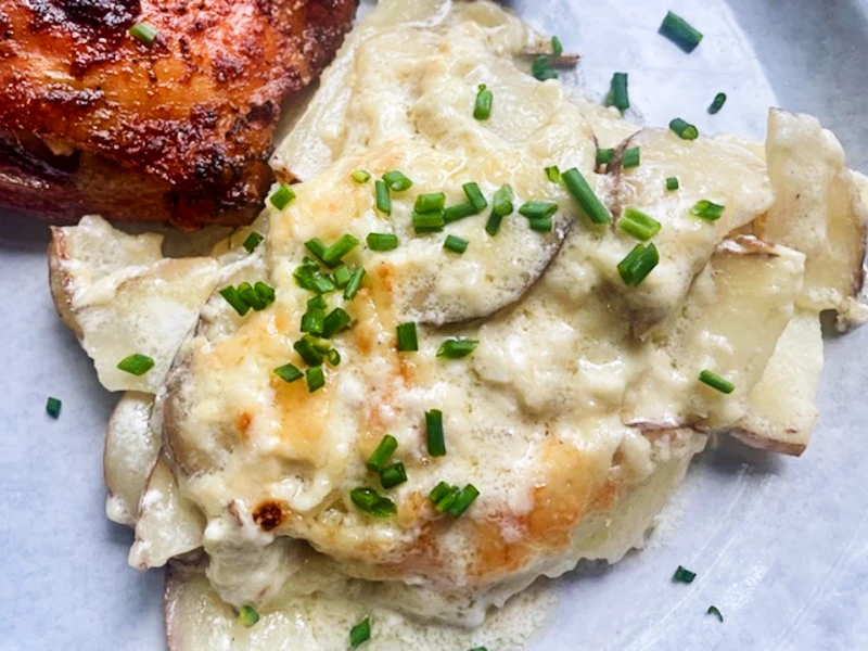 - Assemble & Bake Later (not ideal): If you slice the potatoes and layer them raw, they can darken in the fridge, even under cream. The flavor isn’t ruined, but the color won’t be as pretty. If you want to prep raw, keep the potato slices in a bowl of cold water until layering (drain and pat dry first). Then assemble just before baking.