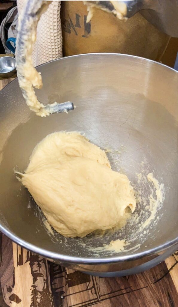 - Mix the Dough – Add the olive oil, egg, salt, and flour. Mix until a soft dough forms. It should be slightly tacky but not sticky.