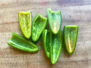 Prepare your peppers: Slice each jalapeño in half lengthwise and remove seeds and membranes (a small spoon works good for this).