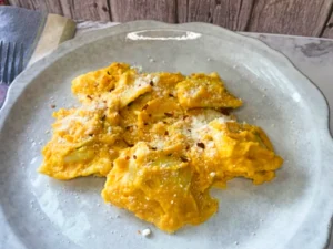 Serve: Plate the ravioli, sprinkle with extra Parmesan, and garnish with a little fresh thyme or cracked pepper if you like.